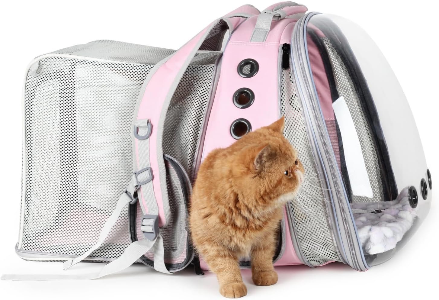 Cat Carrier Backpack, Bubble Dual Expandable Backpack Carrier, Pets and Small Dogs,Airline-Approved, Designed for Travel, Hiking, Walking & Outdoor Use (Dual Expandable-Pink)